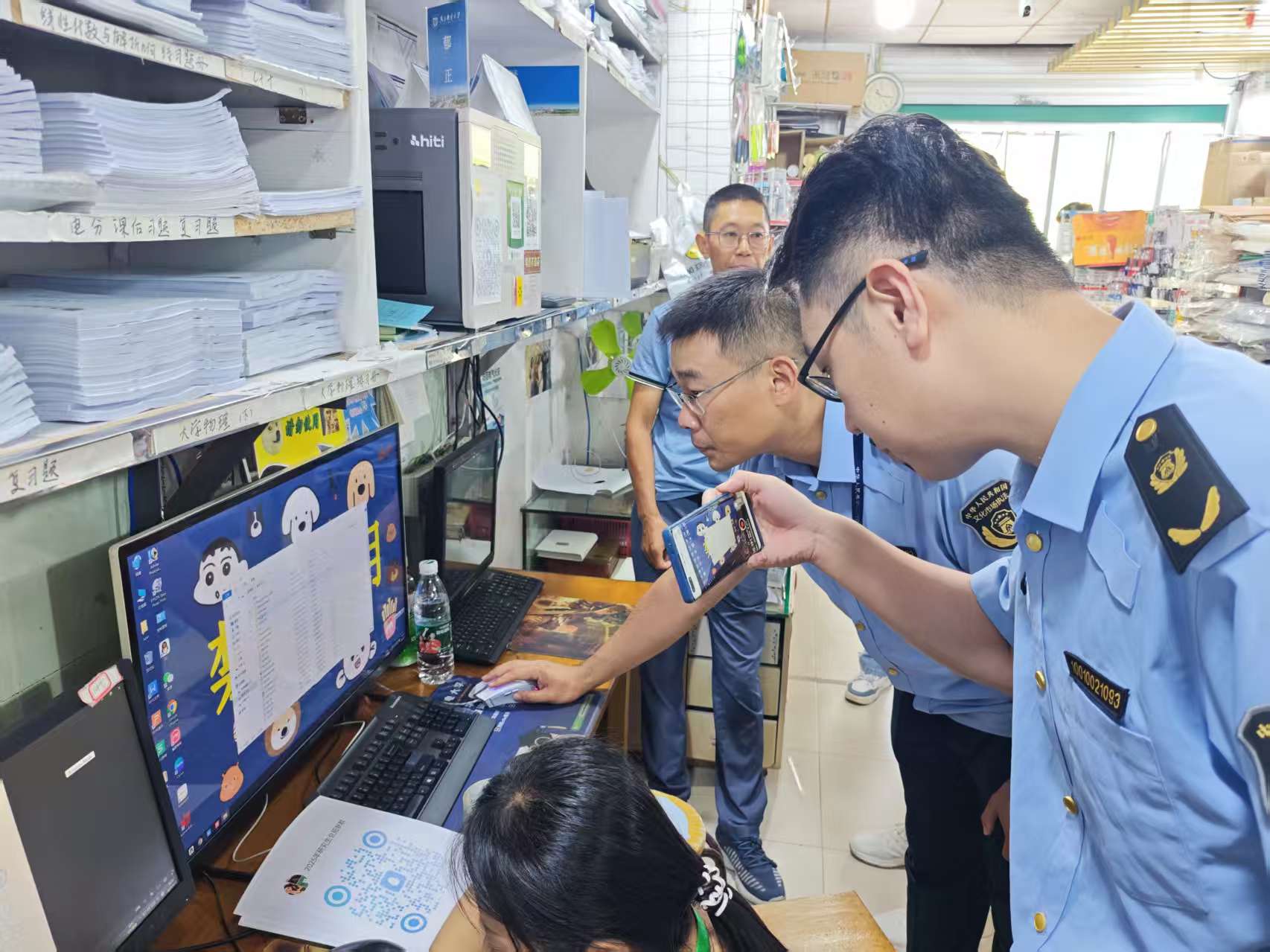 检查期间,公司联合栖霞区文化旅游局、市场监督管理局等职能部门,于9月12日、23日对校内图文制作、食品销售等重点业态开展专项检查。联合检查组深入经营场所,细致查验商户资质证照、商品质量、卫生状况等环节,对发现的问题现场指导整改,下达整改通知书要求限期完善,建立整改台账专人持续跟踪落实进度,确保问题闭环管理。